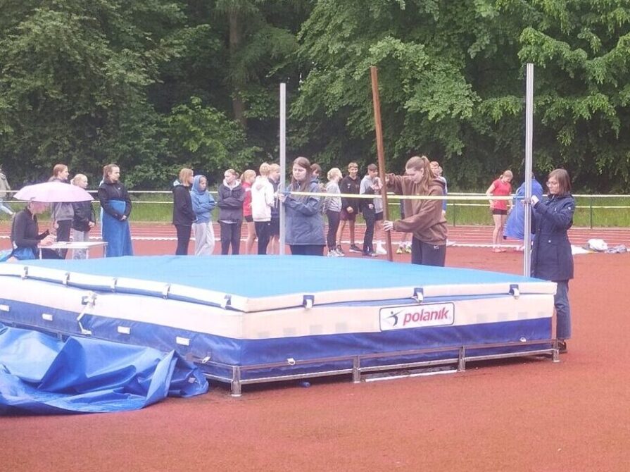 Der Tag begann leider etwas anders als erwartet: Schon seit dem frühen Morgen verdunkelten Wolken den Himmel und es regnete in Strömen. Doch unsere Leichtathleten blieben tapfer und trotzten dem stürmischen Wetter. In „Mixed-Teams“ absolvierten sie zunächst verschiedene leichtathletische Disziplinen wie Hochsprung, Sprint, Weitsprung, Schlagballwurf und Kugelstoßen. Hier erzielten u.a. Juna Springmann beim Ballwurf (43 m) und Marley Owusu beim Weitsprung (4,10 m) tolle Leistungen. Ihre Teamfähigkeit stellten die Harsefelder anschließend bei einer Sprintstaffel unter Beweis. Den krönenden Abschluss des Wettbewerbs bildete der 800-Meter Lauf.